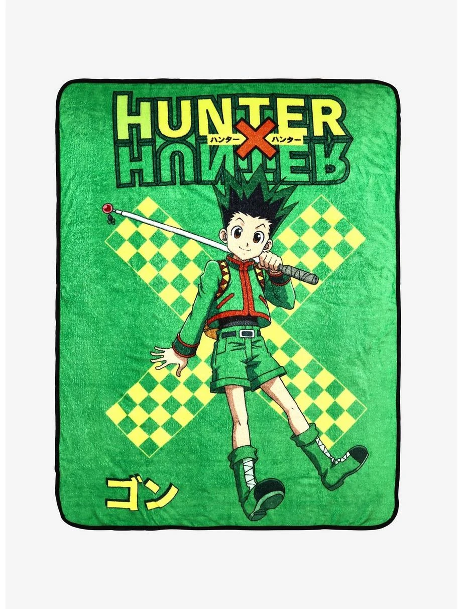 Cozy up for your next adventure with Gon and this Hunter x Hunter throw blanket! Featuring the anime protagonist posed with his trusty fishing rod next to the show’s logo and “Gon” in Japanese katakana lettering, the rookie hunter is ready to accompany you on all of your travels or for your next anime marathon.