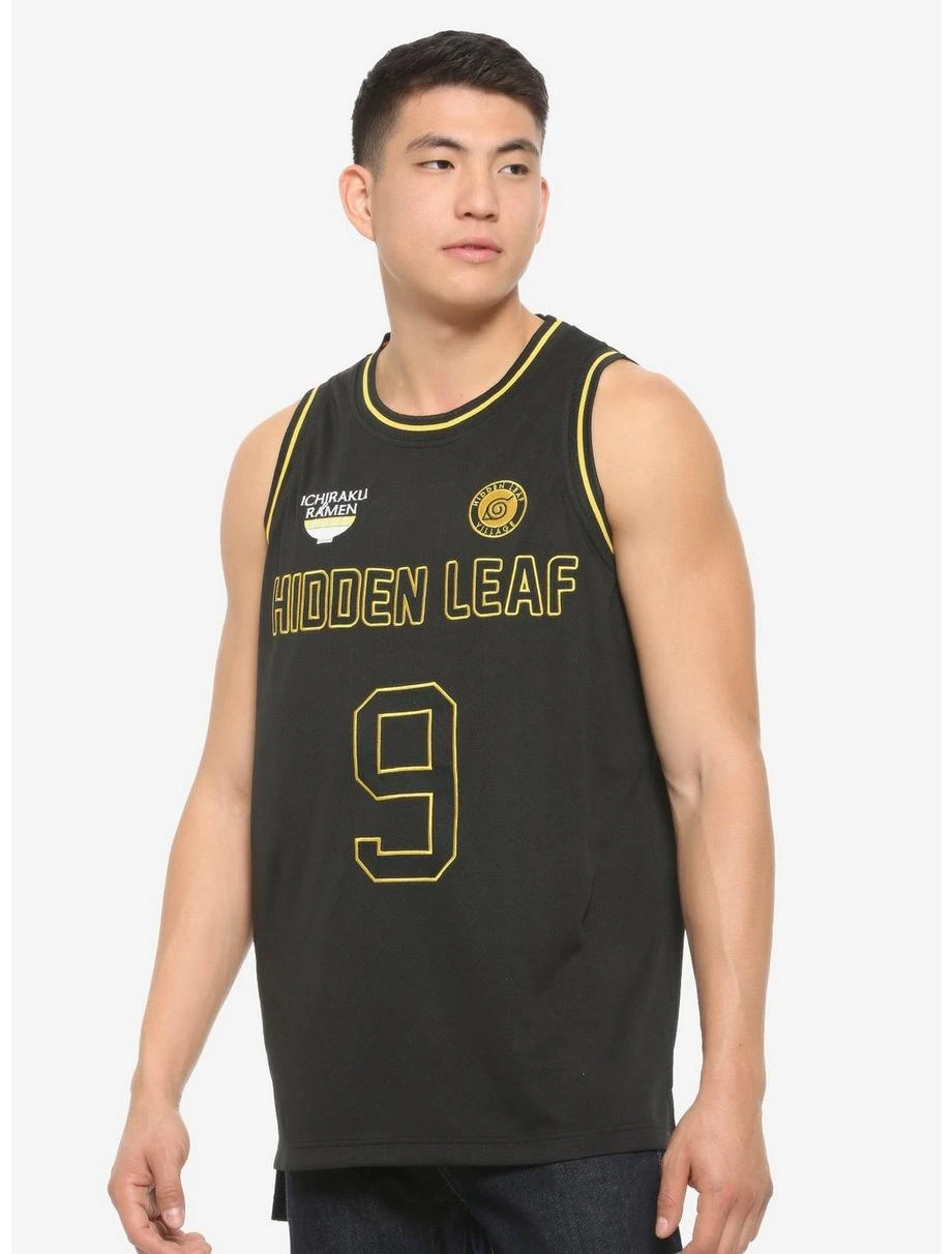 Join Naruto and the rest of the Hidden Leaf Village team with this Naruto-inspired basketball jersey! Maybe after the big game you can all go get a bowl of Ichiraku Ramen. Features embroidered “Hidden Leaf” lettering, a Hidden Leaf Village patch, an Ichiraku Ramen sponsor badge on the front, and embroidered “Uzumaki” and “9” lettering on the back.