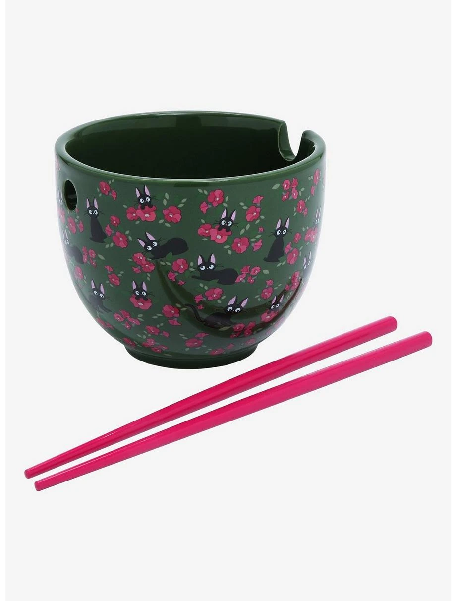 Studio Ghibli Kiki’s Delivery Service Jiji & Flowers Ramen Bowl with Chopsticks – BoxLunch Exclusive