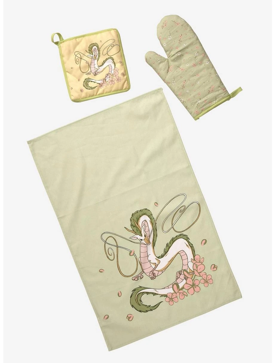 - Mitt approx. 6″ W x 13″ H; pot holder approx. 8″ W x 8″ H; towel approx. 17″ W x 27″ H