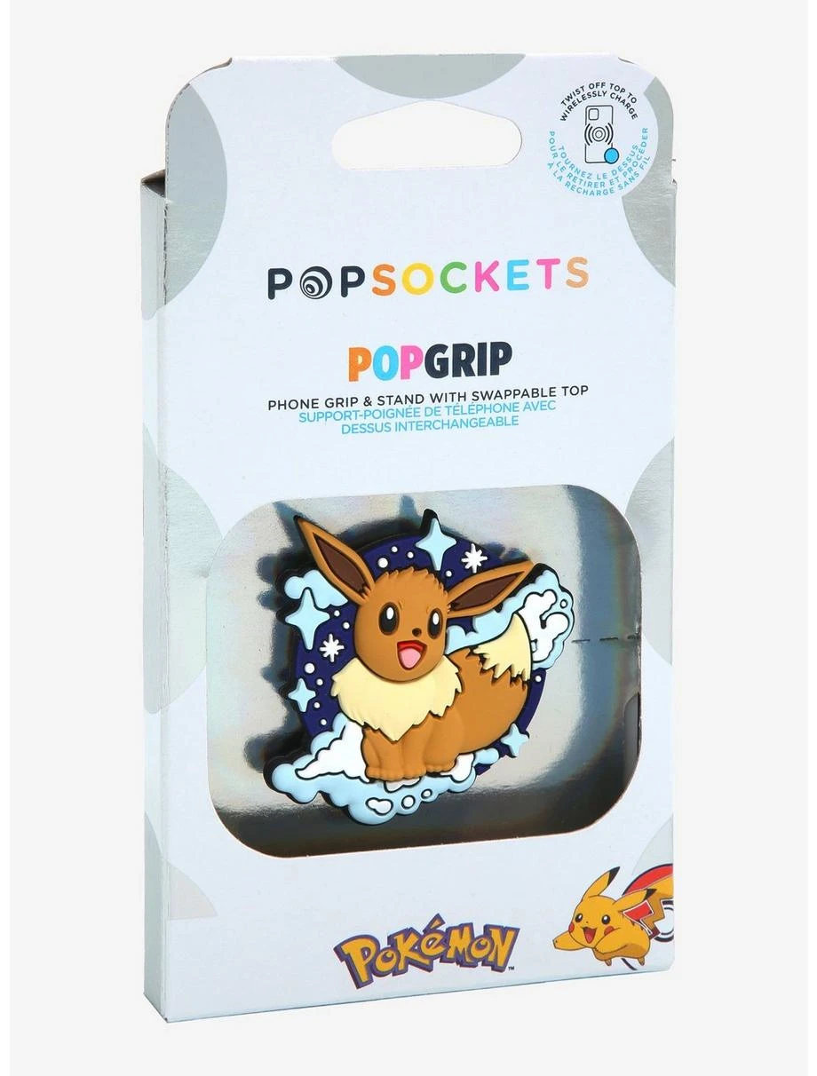 Eevee is ready to add some Poké style to your devices as this PopSocket PopGrip accessory! Featured in a circular cloud portrait as this PopGrip’s 3D rubber top, the base evolution-type Pokémon is sure to help you grip or stand your phone up with ease as this attachable accessory! Twist off the rubber top for wireless charging capabilities!